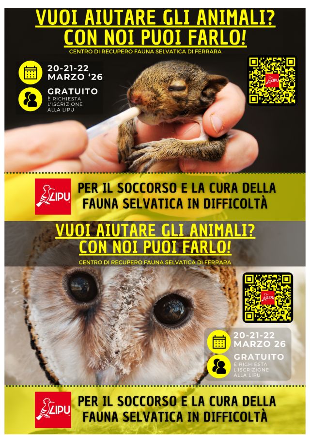 Vuoi diventare volontaria/o LIPU e metterti in campo per la tutela della fauna selvatica? Iscriviti al corso che si terrà nelle giornate di venerdì 20 e sabato 21, dalle ore 17 alle ore 19 a Ferrara presso la sala del CSV, via Ravenna 52, e domenica 22 marzo 2026 presso la sede LIPU di via Porta Catena 118, Ferrara.