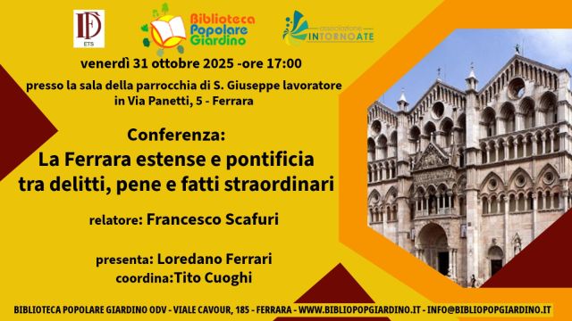 L’incontro è promosso dalla Biblioteca Popolare Giardino, dall’Associazione Intornoate e da Ferrariae Decus ETS.