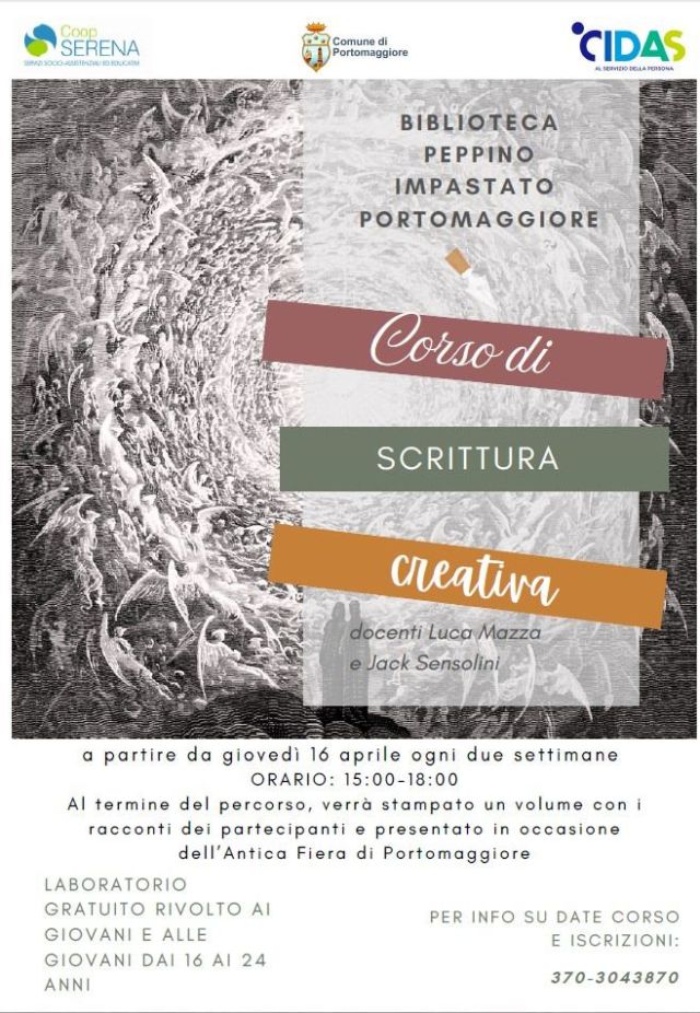 Dal 16 aprile la Biblioteca di Portomaggiore ospita il corso di scrittura creativa di Luca Mazza e Jack Sensolini