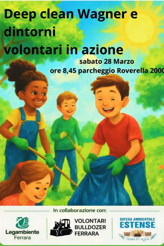 Sabato 28 marzo, ore 8.45 con ritrovo al parcheggio Roverella 2000 di Ferrara, Legambiente Ferrara in collaborazione con l’associazione Difesa Ambientale Estense e Volontari Bulldozer Ferrara organizzano un’azione di “Deep Clean” (pulizia profonda) in un’area urbana di Ferrara oggetto di importante abbandono rifiuti e di littering. L’iniziativa vuole valorizzare le tante opportunità che questa città ci offre, la prima al di sopra di tutte è la fruizione della sua