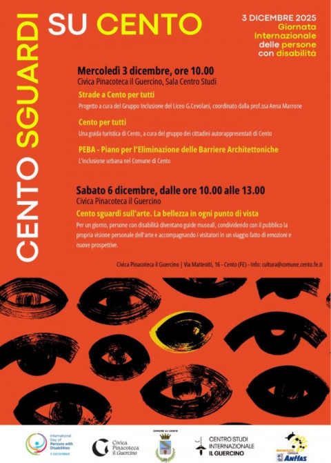 Il Comune di Cento partecipa per la prima volta alla Giornata Internazionale delle persone con disabilità con un’iniziativa dal titolo “CENTO SGUARDI SU CENTO” che si svilupperà il 3 e il 6 dicembre 2025.