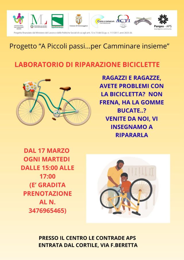 Ragazzi e ragazze, avete problemi con la bicicletta? Ogni martedì, a partire dal 17 marzo 2026, ore 15-17, laboratorio per apprendere la riparazione delle biciclette (riparazione freni, gomme,…) presso il centro Le Contrade Aps, entrata dal cortile, via F. Beretta, Portomaggiore.