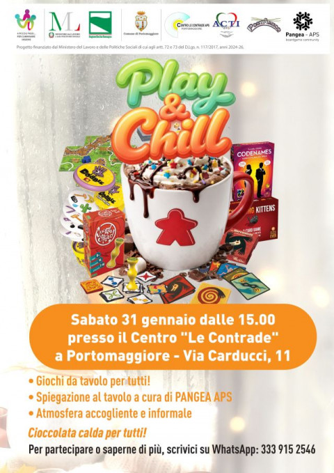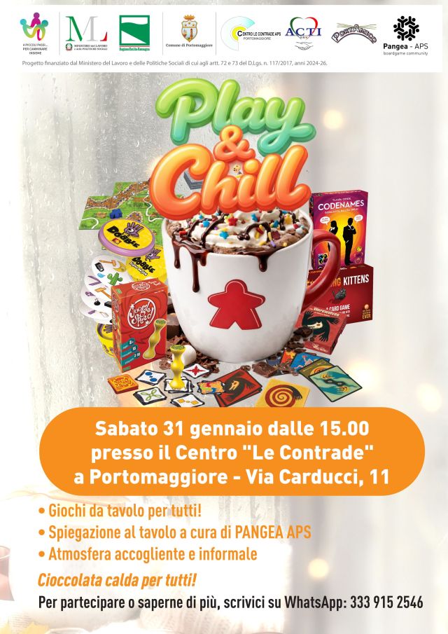 Sabato 31 gennaio, dalle 15 presso il Centro “Le Contrade”, in via Carducci 11 a Portomaggiore Pangea Aps invita a un pomeriggio con giochi da tavolo per tutti, spiegazione al tavolo, atmosfera accogliente e informale più cioccolata calda!