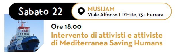 Per questo appuntamento è prevista la partecipazione dell’Associazione Mediterranea Saving Humans, con la presenza di Alessandro Metz, operatore sociale con oltre trent’anni di esperienza nel campo della salute mentale, dei disabili, dei minori e nel settore accoglienza. Alessandro Metz nel 2018, assieme ad altri attivisti, ha co-fondato Mediterranea Saving Humans, associazione civile e con governativa, oggi APS, che opera per il soccorso ed il monitoraggio del Mediterraneo ed ha messo in mare la prima e tuttora unica, nave di soccorso civile battente bandiera italiana: la Mare Jonio; ad essa si sono aggiunte, nel tempo, la barca a vela Safira e Mediterranea Ship. La ong, che ha un suo equipaggio di terra presente anche a Ferrara, salva vite in mare e denuncia le incongruenze delle politiche migratorie attraverso la sua attività di soccorso e testimonianza. Migliaia di persone sono associate a Mediterranea in più di 40 territori in Italia, Europa e Stati Uniti. Mediterrranea Saving Humans vive del supporto e del sostegno di privati, gruppi, associazioni e realtà solidali, proprio come Tutori nel Tempo di Ferrara, che ospiterà volontari ed attivisti