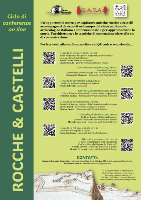 Da giovedì 23 ottobre, Museo Archeologico Ambientale, Gruppo G.A.S.A. - Aps e Associazione Iasos di Caria - Aps promuovono un ciclo di 8 conferenze on line, ore 21, dal titolo "Rocche & Castelli". Scopri come partecipare!