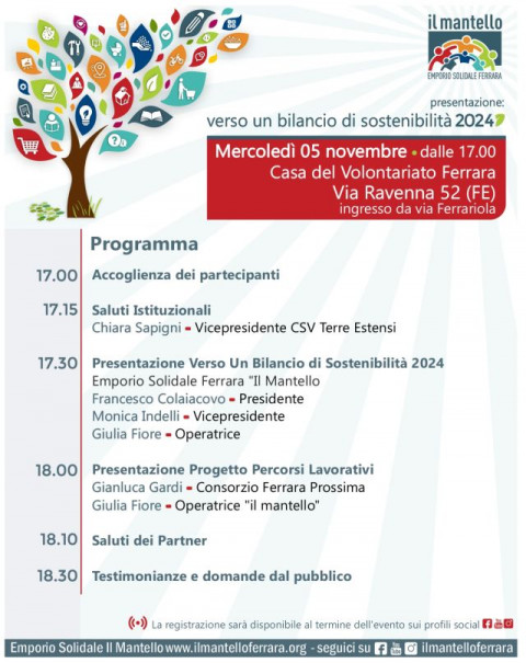 Mercoledì 5 novembre, dalle 17, presso la Casa del Volontariato di Ferrara, in via Ravenna 52